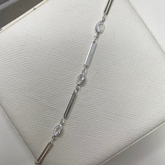 Pulseira elos alongados e pedras em zircônia