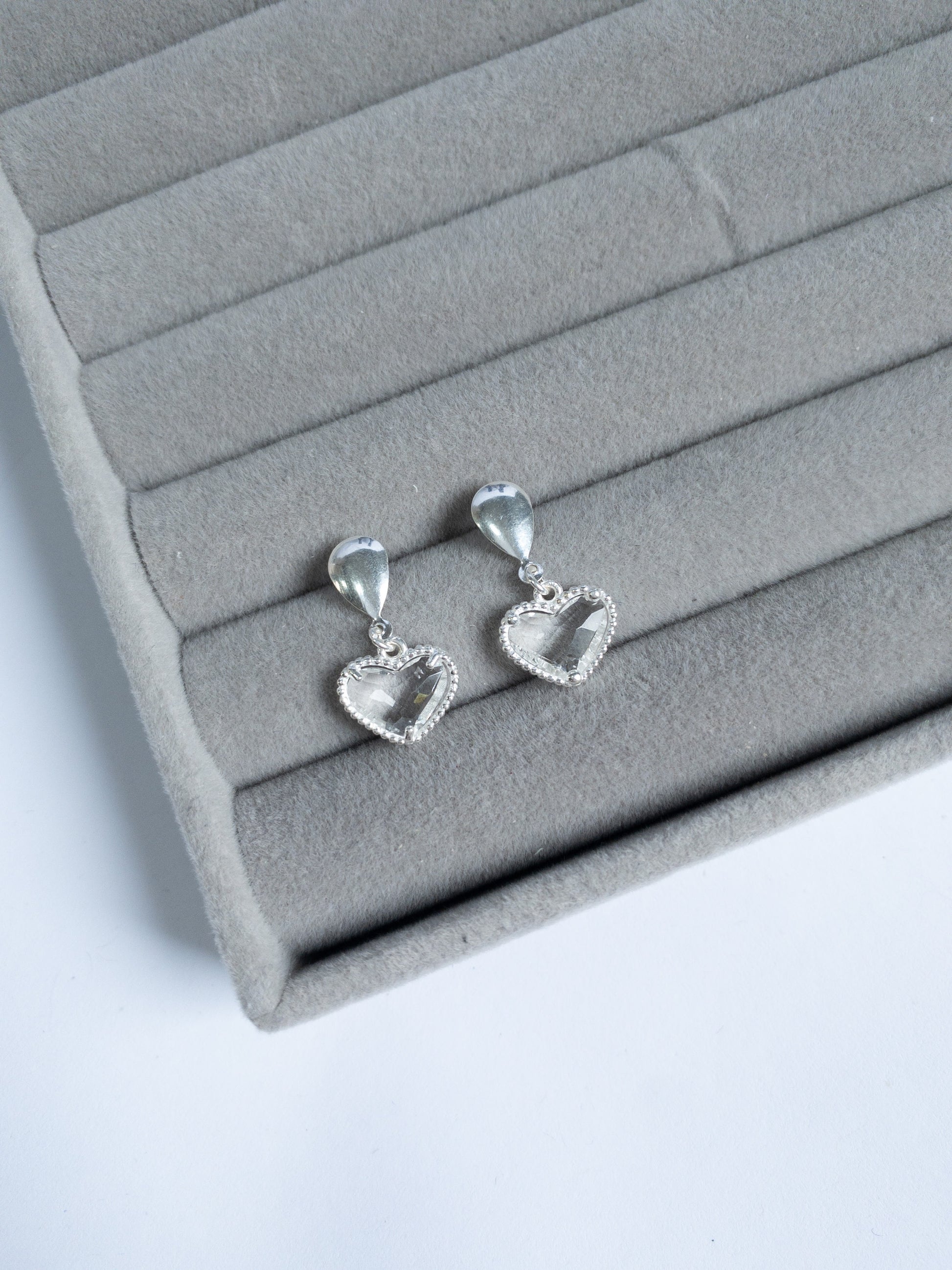 Brinco Cora — Pendurado coração lapidado em cristal transparente