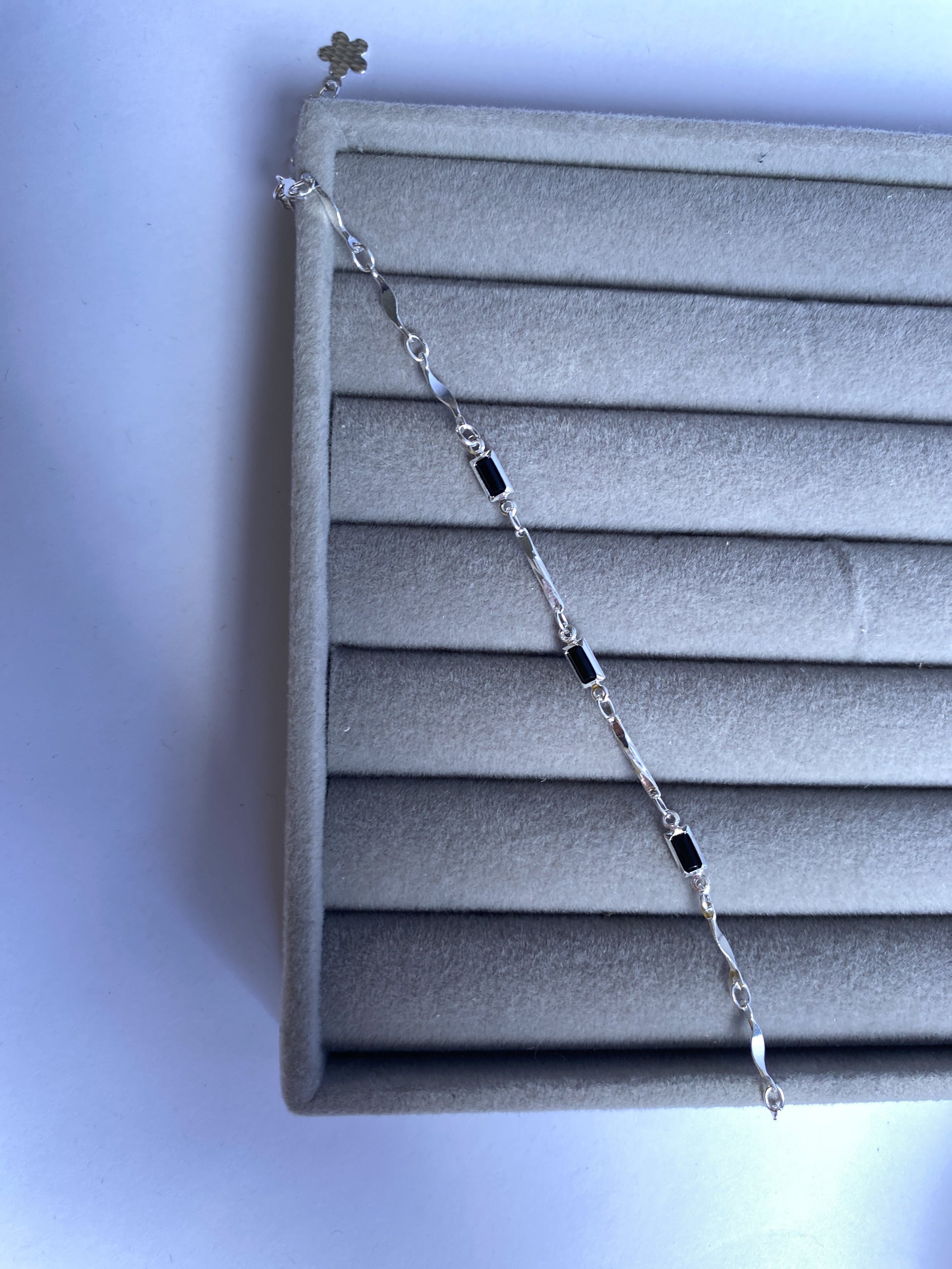 Com design contemporâneo e personalidade marcante, a Pulseira Nérys une a delicadeza da corrente fina a elementos geométricos alongados, criando um visual elegante, moderno e cheio de estilo. Os detalhes em tom escuro trazem contraste e profundidade, valorizando ainda mais a composição da peça.